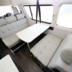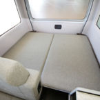 ハイエースをベースとしたバンコンタイプでも、ゆったりとした旅がコンセプトのアペックスパートナーは、ハイエースにハイルーフ架装を施し、プルダウンベッドを装備することで快適な就寝スペースを確保すると共に、ダイネットスペースの拡大化をはかりギャレーやテーブル周辺へのゆとりと扱いやすさを求めました。マルチスペースとなるリアには折り畳み式ベッドを装備することで荷物の積載から就寝など用途に合ったスペースづくりが可能となります。