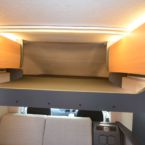 ハイマウントダブルベッドレイアウトを採用したハイエース軽量アルミシェルキャブコン。