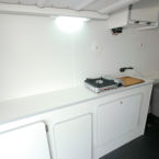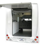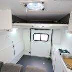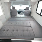 ベース車輌であるハイエースの積載性をブラッシュアップさせるとともに、最大9名まで乗車を可能とし「積載」と「快適」を追求したのがタンデムトランポ。3人掛けシートを2列目、3列目にレイアウトすることで快適な居住スペースを確保。キッチンスペースをリア側面に配置し、ラゲッジスペースにも余裕をもたらしました。キッチンスペースの対面に装備した折り畳みが可能な多目的シートや、超大型の荷物の出し入れを可能とする特大のリアハッチなどはトランポモデルの魅力です。