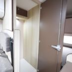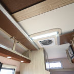 ハイマウントダブルベッドレイアウトを採用したハイエース軽量アルミシェルキャブコン。