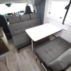 トヨタハイエーススーパーロングDXをベースとし、大人5人が余裕をもって過ごせる設計のトムタンデムは、ダイネットテーブルでは5人が対面して食事や談話できます。セカンドシートの調整幅を広くすることで前向きの乗車ポジションやベッドなどにも変更できるマルチレイアウトが魅力。