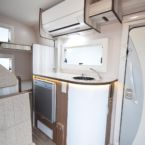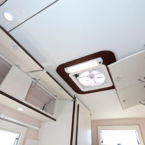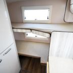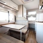 トヨタハイエース標準ボディと独自の製法であるハイドロバックパネルの組み合わせで「強い・軽い・広い」を実現化させたキャブコンのトム200は、峠道やキャンプ場の悪路なども難なく乗りこなす走破性に加え、対面4人でテーブルを囲めるダイネットスペースを兼ね備えています。セカンドシートを展開してサブマットを敷き詰めれば1850mm× 1300mmのベッドにもなり、リアには折り畳み式2段ベッド、ルーフにはスライド式のベッドと就寝定員も抜かりはありません。